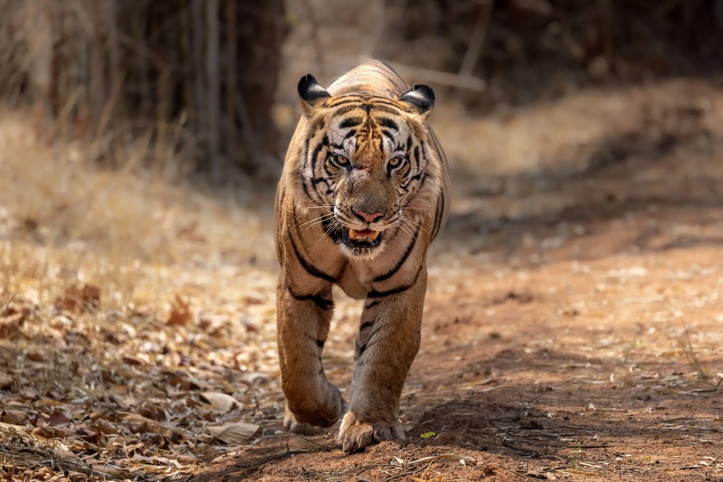 Am darauf folgenden Morgen fuhren wir fünf Stunden in den vierten und somit letzten Nationalpark dieser Reise - den Tadoba-Nationalpark. Der Tadoba-Nationalpark, auch bekannt als Tadoba Andhari Tiger Reserve, liegt im Bundesstaat Maharashtra und ist das älteste und größte Tigerreservat dieses Bundesstaates. Der Park wurde 1955 gegründet und umfasst heute eine Fläche von etwa 1.727 km², inklusive Kern- und Pufferzonen. Tadoba ist bekannt für seine stabile Population an bengalischen Tigern und gehört zu den besten Orten in Indien für Tigerbeobachtungen. Neben Tigern leben hier auch Leoparden, Lippenbären, Wildhunde, Gaure, Hirsche, Krokodile und zahlreiche Vogelarten. Die Landschaft ist geprägt von Trockenwäldern, Grasflächen, Hügeln und dem Tadoba-See, der vielen Tieren als Wasserquelle dient.